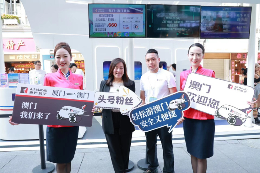 澳门航空在此也向广大厦门市民朋友们发出邀请,在10月26日至10月30日打卡“厦门澳门周”,到现场各展位体验各式澳门魅力,感受浓郁的葡澳氛围,同时热情欢迎厦门市民搭乘澳门航空的航班赴澳门观光旅游。澳门航空厦门-澳门的直飞航线目前每日运行一班,厦门飞往澳门的时间是20:15-21:45,澳门返回厦门的时间是17:45-19:10。