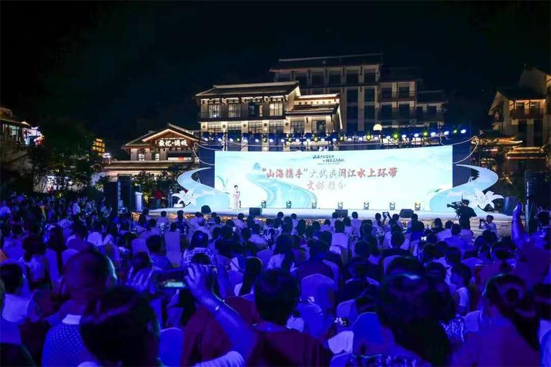 夜幕降临后,武夷山水城中央舞台成为活动“高光现场”。开场舞蹈《成功赋》以郑成功文化为内核,铿锵鼓点中尽显延平深厚历史底蕴;“百合仙子”登台推介大武夷闽江水上环带文旅资源及秋季特色线路,生动讲解勾起现场观众出行热情;5位延平特色产品推荐人通过实物展示与故事分享,带领观众触摸延平文化脉络与产业特色。